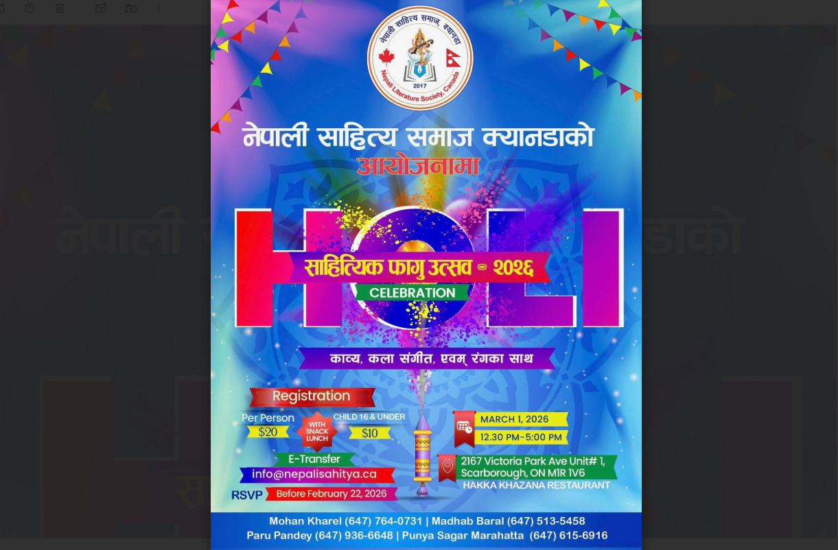 क्यानडाखबर डेस्क । नेपाली साहित्य समाज क्यानडाले मार्च १, २०२६ मा साहित्यिक फागु उत्सव–२०२६ को आयोजना गर्दैछ जहाँ...