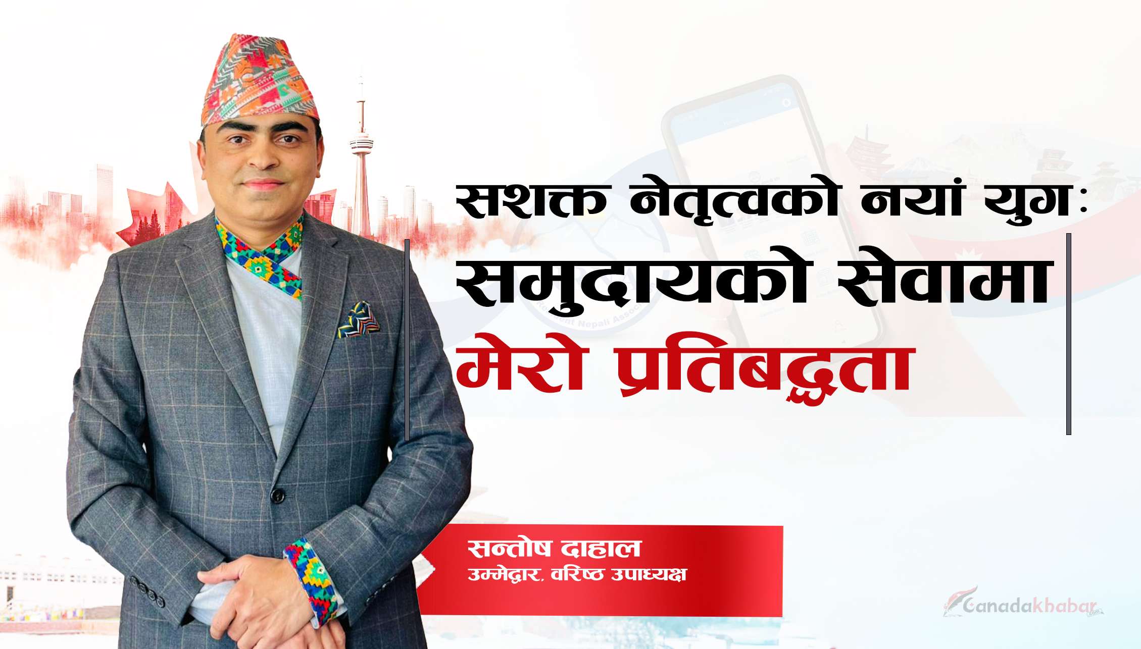 सन्तोष दाहालवरिष्ठ उपाध्यक्ष उम्मेद्वार नेतृत्व पद केवल हैसियतको विषय होइन, यो त समुदायप्रतिको समर्पण, उत्तरदायित्व र सेवाको प्रतीक हो। म, एनआरएनए क्यानाडाको वरिष्ठ उपाध्यक्ष पदको उम्मेदवारका...