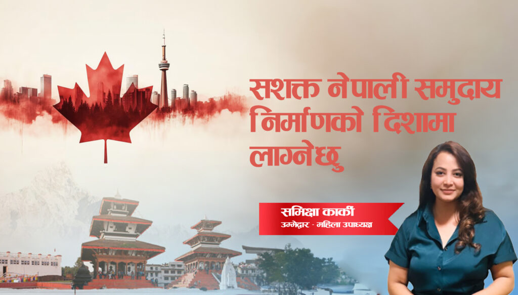 क्यानाडा जस्तो सम्भावनायुक्त देशमा बसेर, हामी नेपालीहरूले आफ्नो पहिचान, मूल्य र संस्कृति जोगाउँदै अघि बढ्नु आवश्यक छ। म समिक्ष्या कार्की, विगत केही वर्षदेखि Alberta मा अवस्थित एक Immigration Law Form मा Human Resources Manager को रूपमा कार्यरत छु। मेरो यो पेशागत यात्रासँगै मैले सामाजिक क्षेत्रमा पनि सक्रियता जनाउँदै आएकी छु। मैले केवल Alberta भित्र मात्र होइन, क्यानडाका विभिन्न प्रान्तहरूमा रहेका नेपाली समुदायसँग सहकार्य गर्दै आपतकालीन सहयोग, महिला सशक्तिकरण, र सामाजिक सेवाका अभियानहरूमा उल्लेखनीय भूमिका निभाएकी छु।
