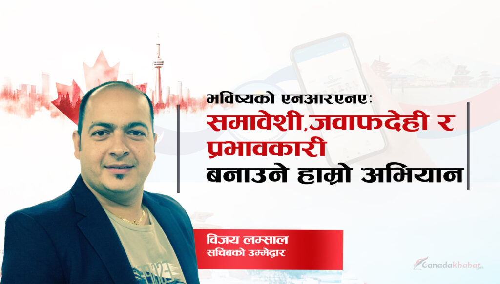 विविधता र अवसरले भरिएको देश क्यानडामा, एनआरएनए क्यानडाको भूमिका अझ महत्वपूर्ण बन्छ: विभिन्न प्रान्त र क्षेत्रमा रहेका नेपालीहरूलाई आपसमा जोड्ने हाम्रो धेरैधार्मिक, सांस्कृतिक र भाषिक सम्पदाको प्रवर्द्धन गर्ने आर्थिक, शैक्षिक, र पेशागत अवसरहरू सिर्जना गर्ने प्रवासीहरूको आवाजलाई राष्ट्रिय र अन्तर्राष्ट्रिय तहमा प्रतिनिधित्व गर्ने नयाँ आप्रवासीहरू तथा विद्यार्थीहरूलाई स्थायीत्व र प्रगतिको बाटोमा अघि बढ्न सहयोग गर्ने एनआरएनए क्यानडा नेपाल र विदेशस्थित नेपालीहरू बीचको सेतु हो — जसलाई दूरदृष्टि, जिम्मेवारी र समर्पणसाथ अगाडि बढाउनु अत्यन्त आवश्यक छ।