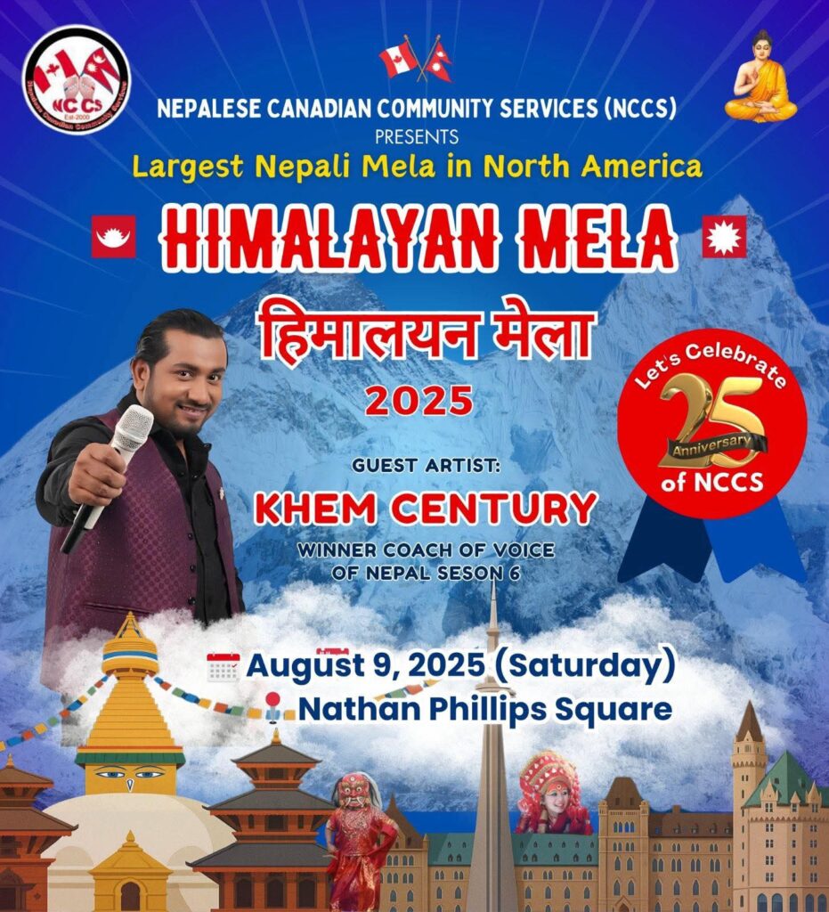 आफ्नो स्थापना स्थापनको २५ औं बर्षगाँठ अर्थात रजत जयन्ती पारेर उत्तर अमेरिकाकै सबैभन्दा बृहत मेला मानिदै आएको नेपाली मेला “हिमालयन मेला” को यसपटकको १७ औं संस्करण क्यानडाको मुख्य शहर टोरोन्टोको डाउनटाउन स्थित नेथन फिलिप स्क्वायरमा भब्यताकासाथ मनाउने तयारीमा जुटेको आयोजक संस्था नेपलीज कम्युनिटी सर्भिसेज (NCCS) का महासचिव सुदर्शन सापकोटासंग कार्यक्रमको तयारीका सन्दर्भमा सहकर्मी मदन बस्नेतको बिशेष कुराकारी-