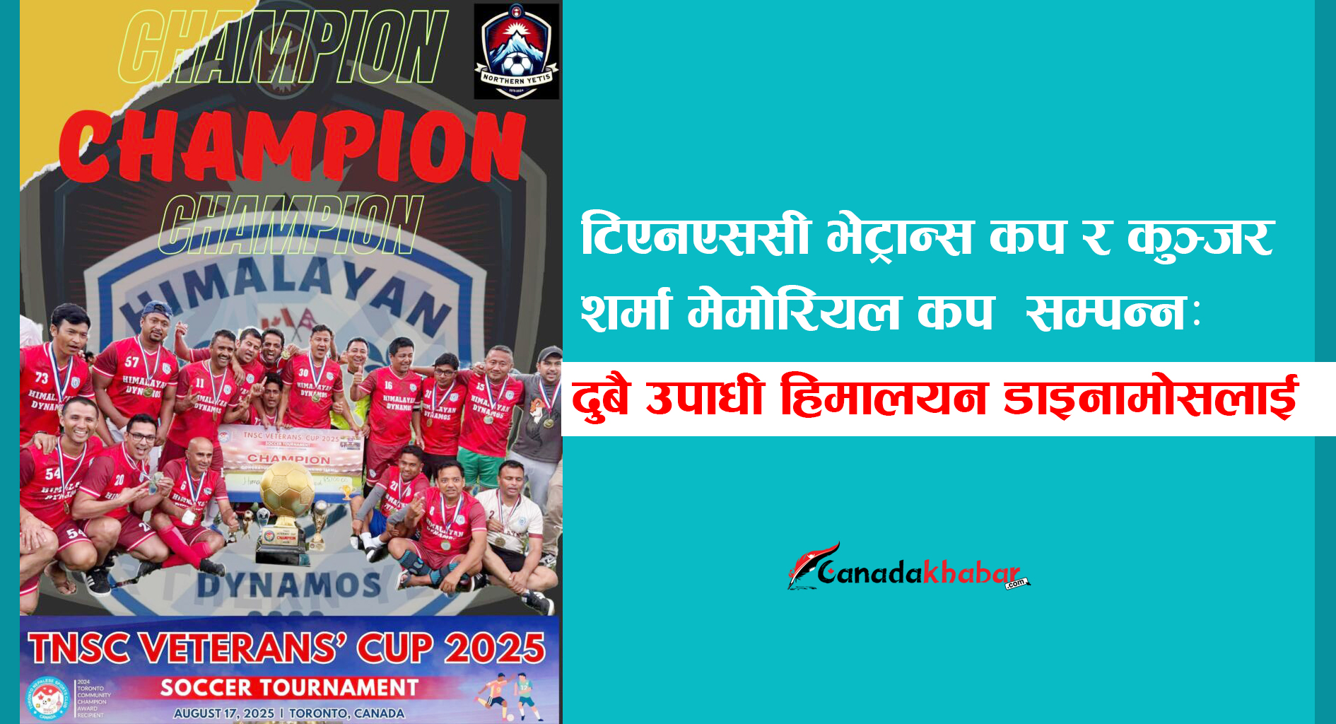 मदन बस्नेत – क्यानडाखबर टोरोन्टो । टोरन्टो नेपलिज स्पोर्ट्स क्लब (TNSC) ले आयोजना गरेको टिएनएससी भेट्रान्स कप २०२५ र कुञ्जर शर्मा मेमोरियल कप U15 भव्यताका साथ सम्पन्न भएको छ। अगस्ट १८ आइतबार...