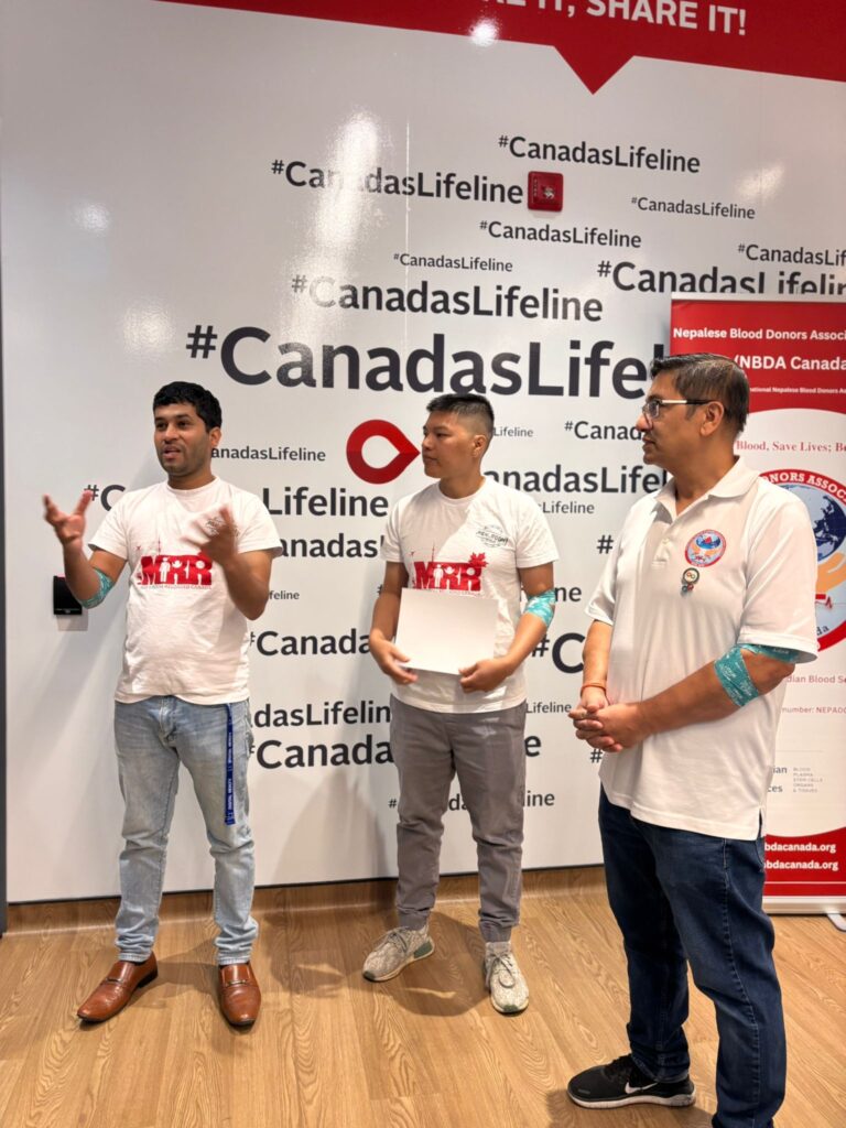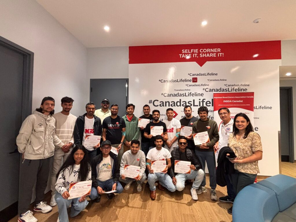 क्यानडाखबर डेस्क । – टोरोन्टो । क्यानाडियन ब्लड सर्भिसेसको स्कारबरो शाखामा नेपालिज ब्लड डोनर्स एसोसिएसन (NBDA Canada) तथा मेन्स रुम रिलोडेड क्यानडा (MRR Canada) सहकार्यमा रक्तदान कार्यक्रम सम्पन्न भएको छ।